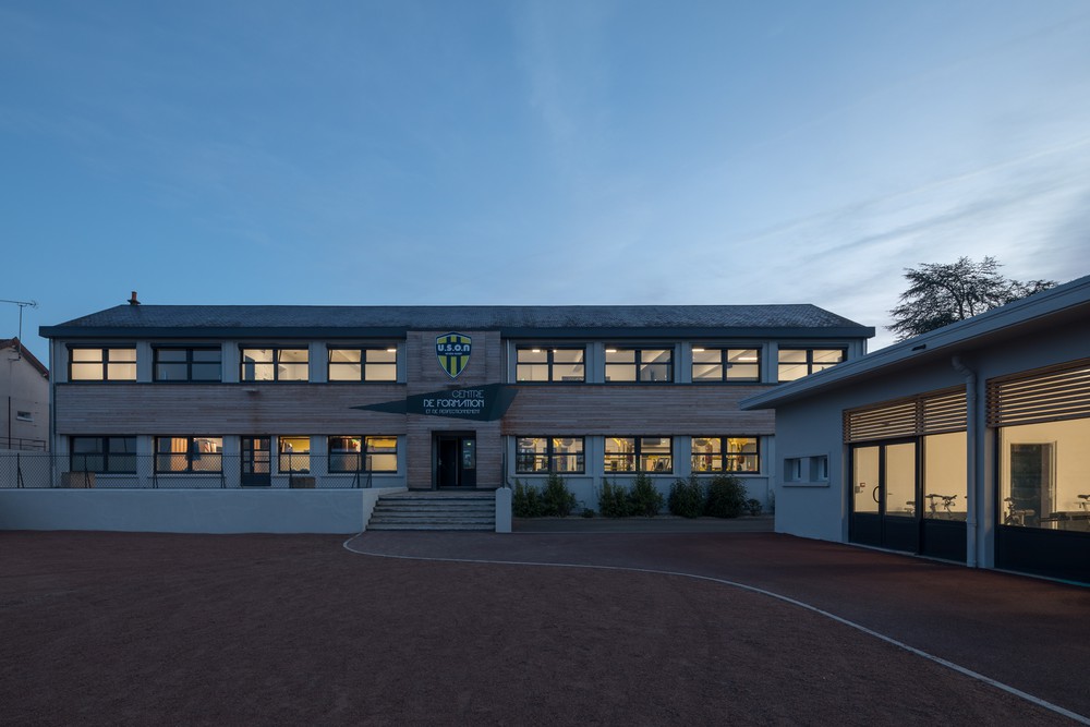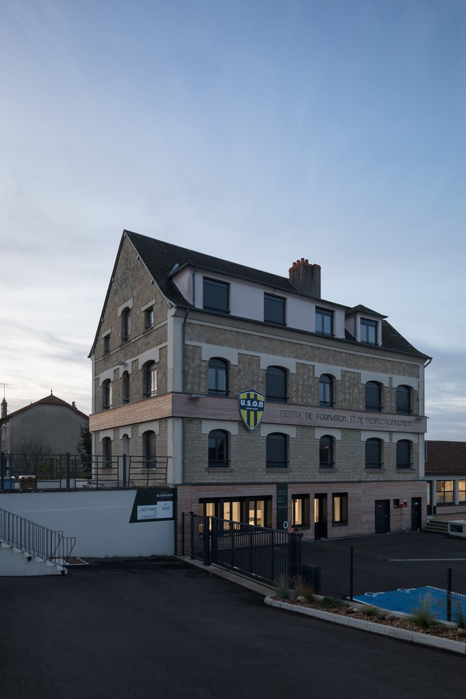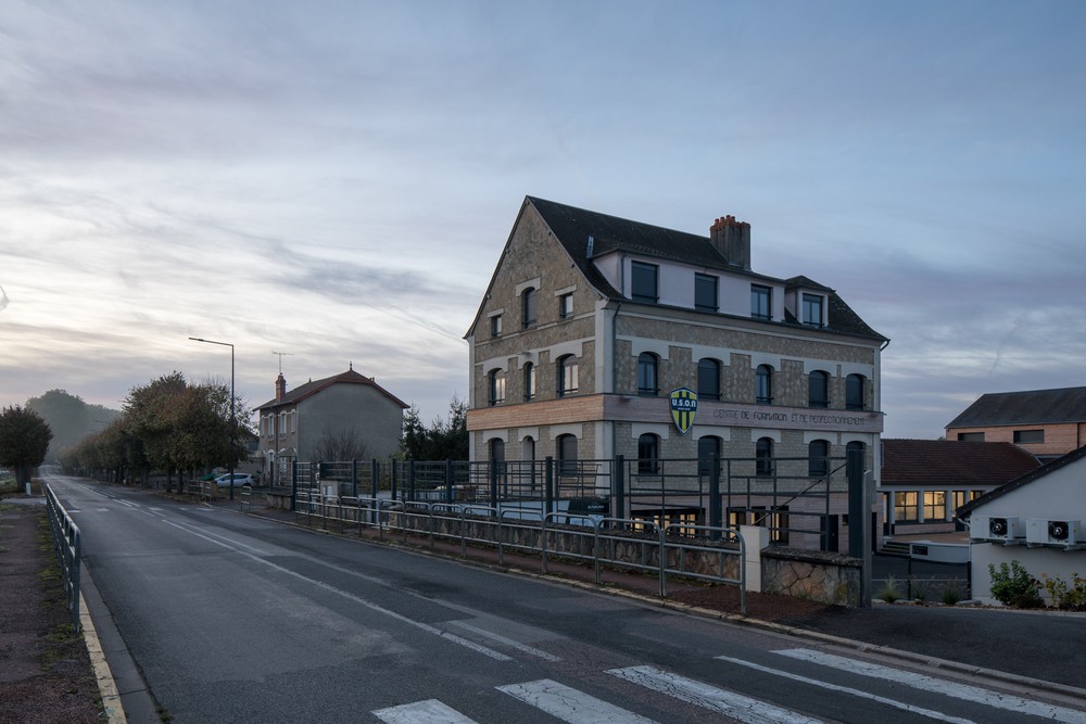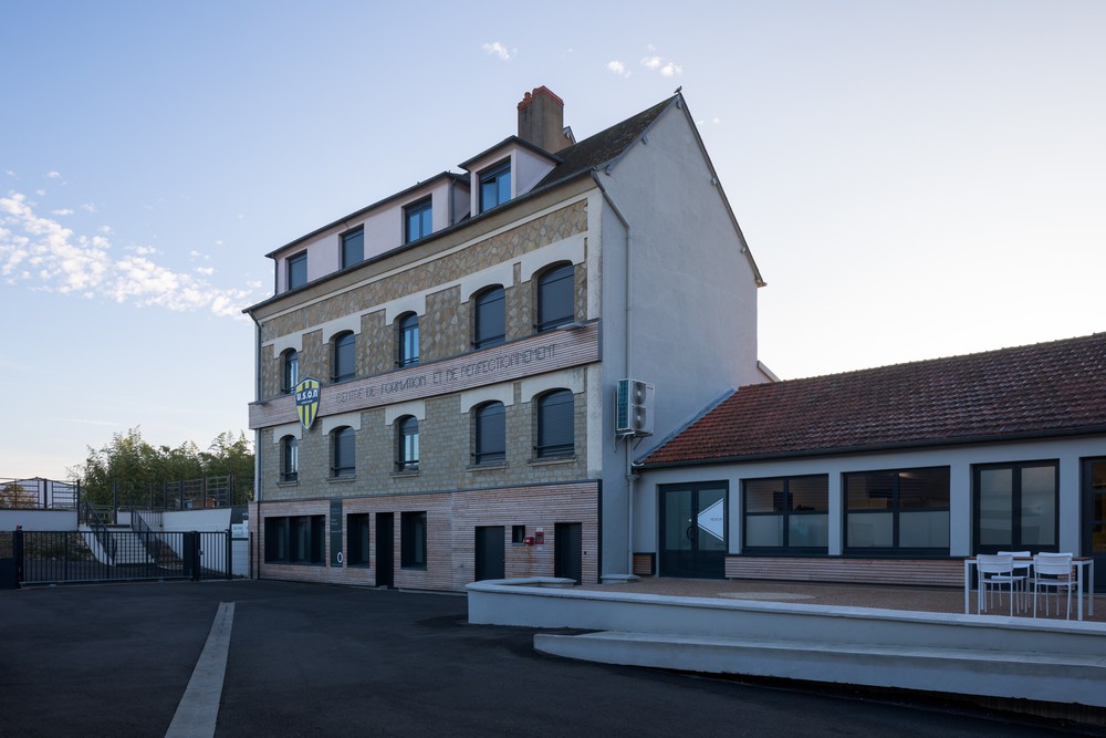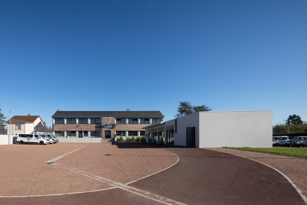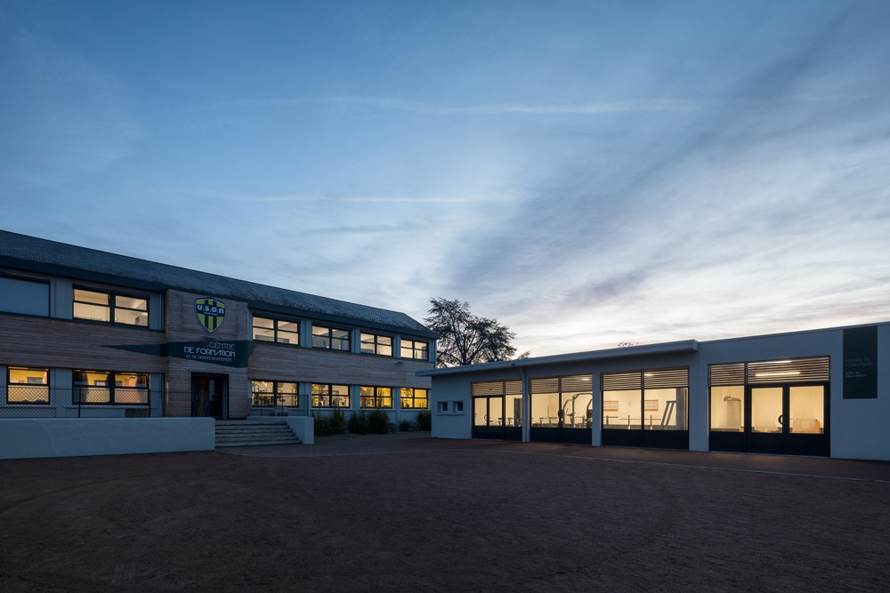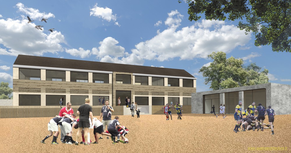 Au Nord des terrains d’entraînement de l’équipe de rugby, nous réhabilitons une ancienne école pour y accueillir le centre de formation ainsi que des salles de musculation pour les joueurs titulaires.