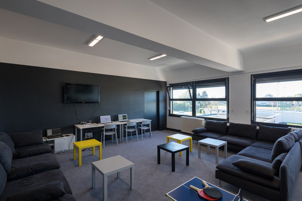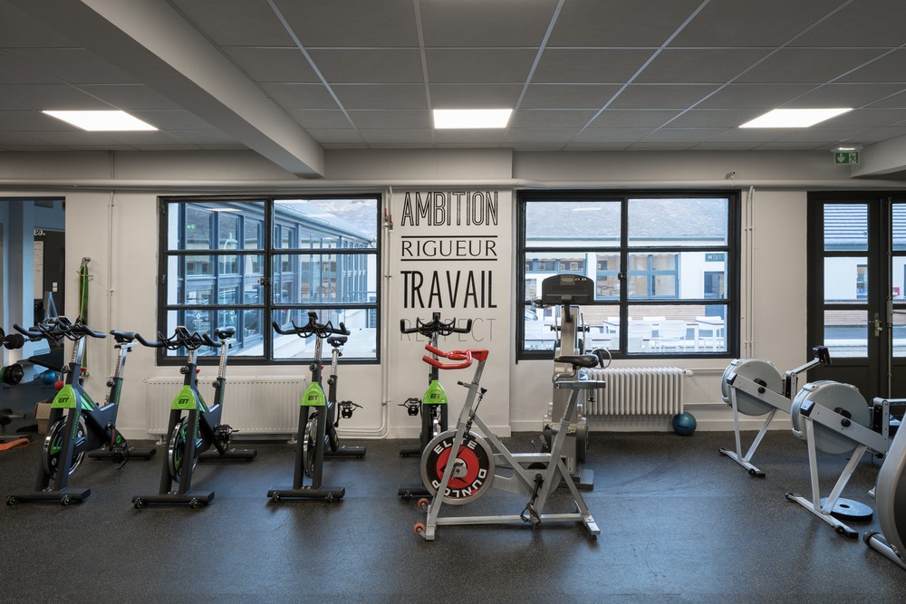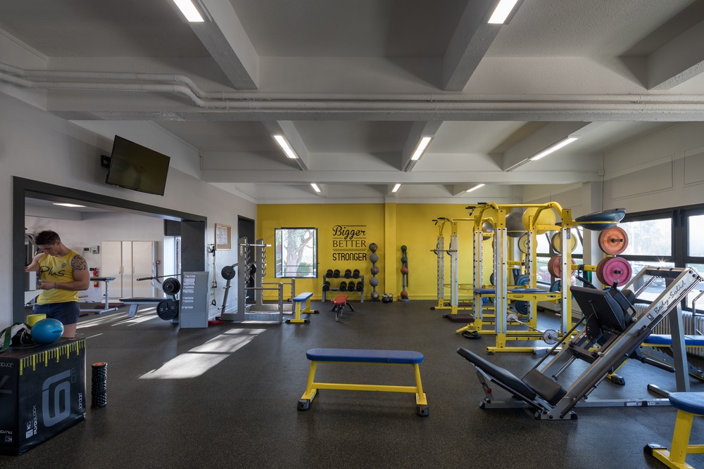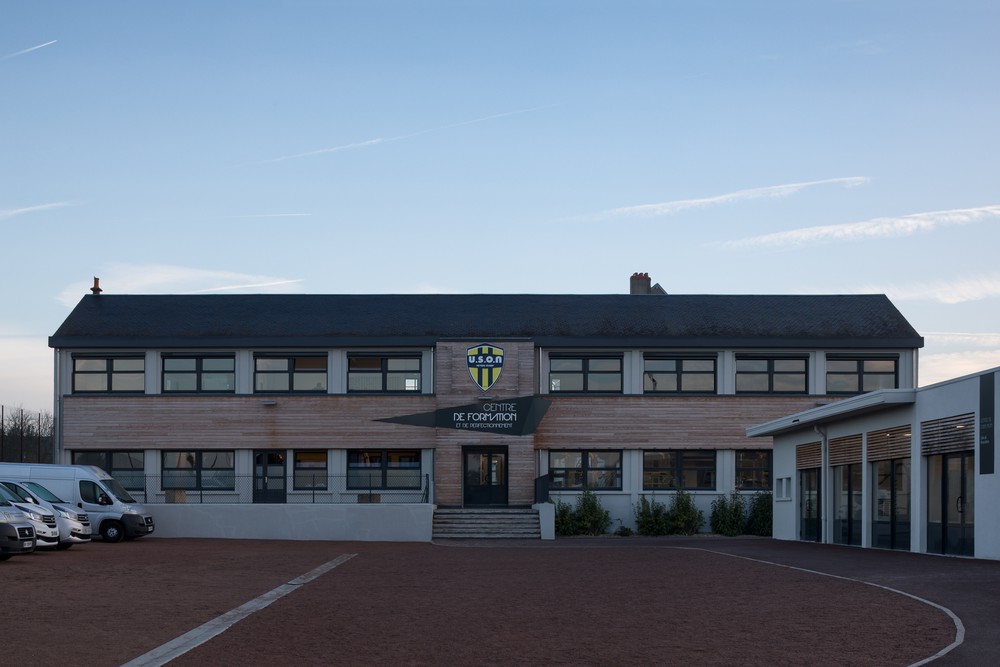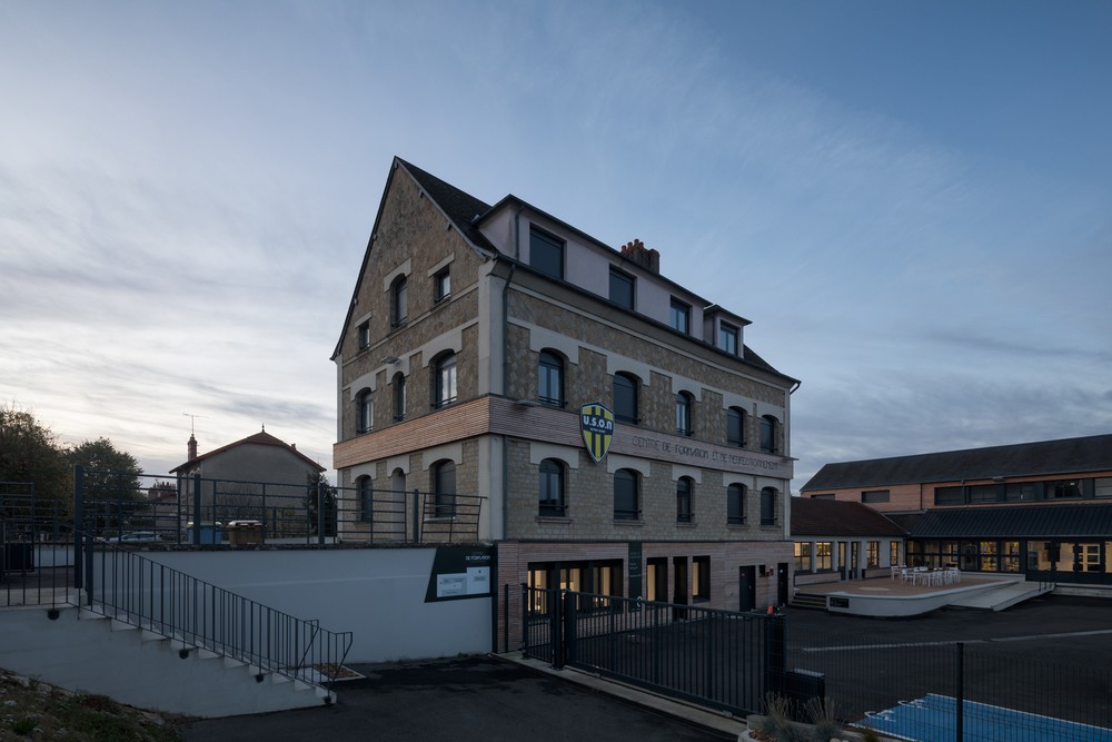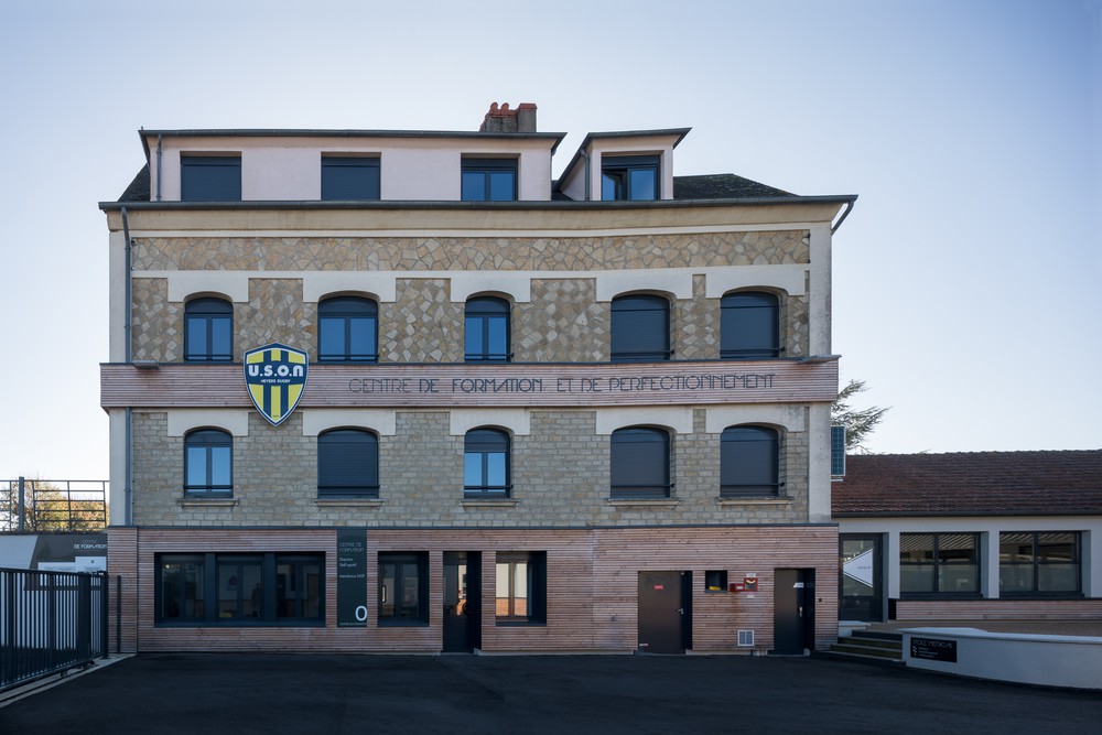 Au Nord des terrains d’entraînement de l’équipe de rugby, nous réhabilitons une ancienne école pour y accueillir le centre de formation ainsi que des salles de musculation pour les joueurs titulaires.